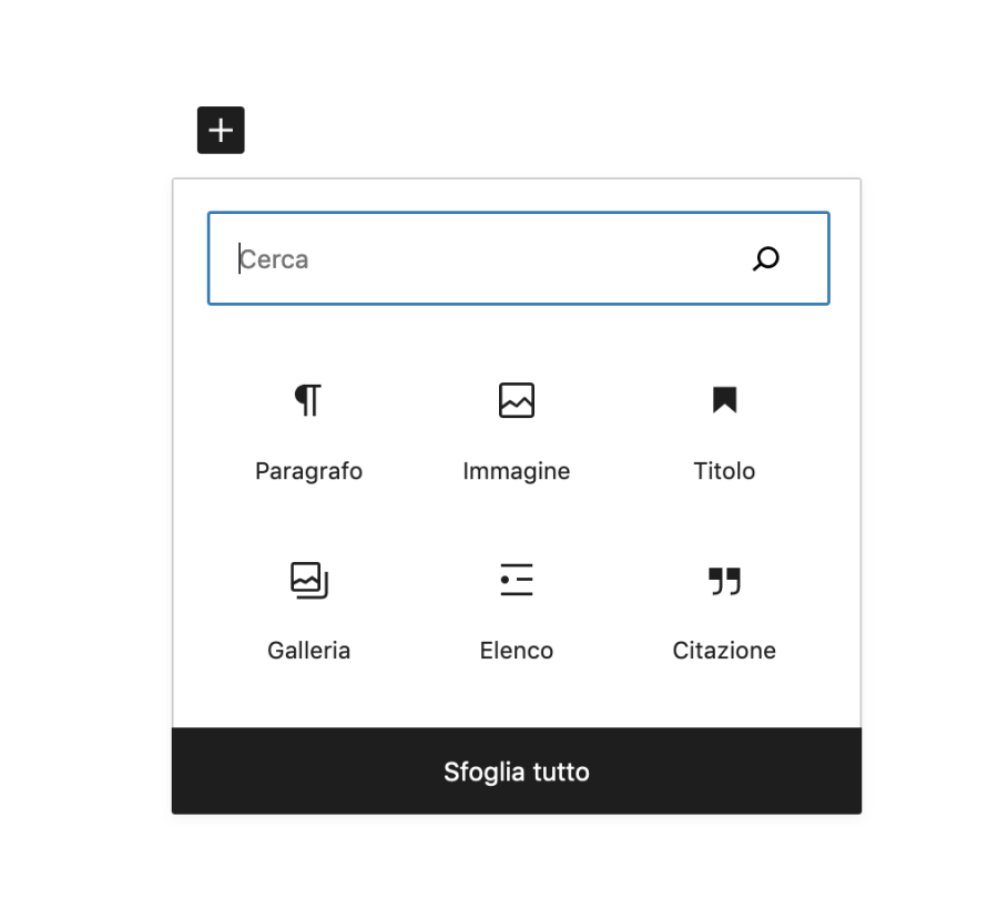 Da un classico editor di testo wysiwyg si è passati ad un sistema di inserimento contenuti a blocchi, in cui ogni blocco rappresenta un elemento con delle sue caratteristiche, ad esempio un paragrafo, un titolo, un elenco puntato, e via dicendo.